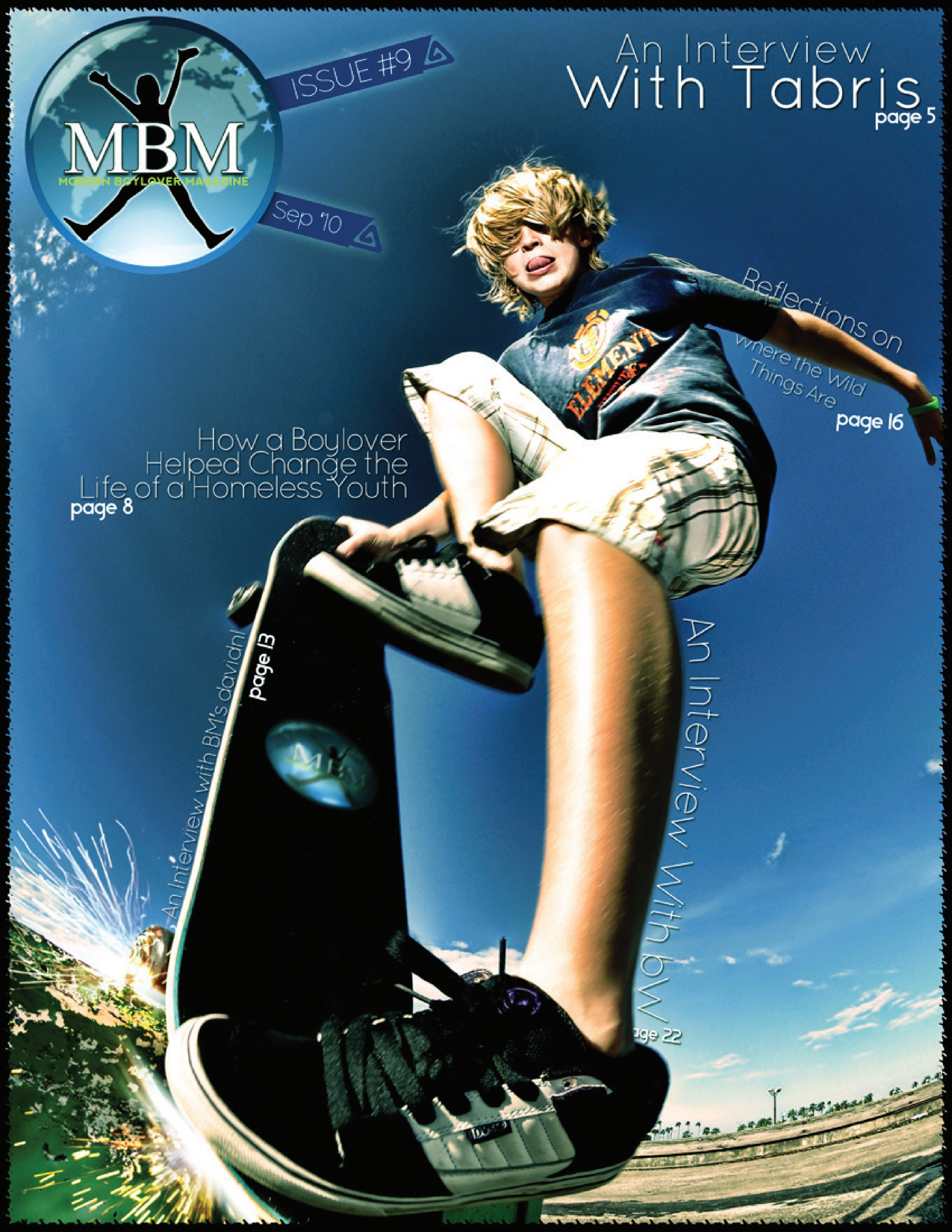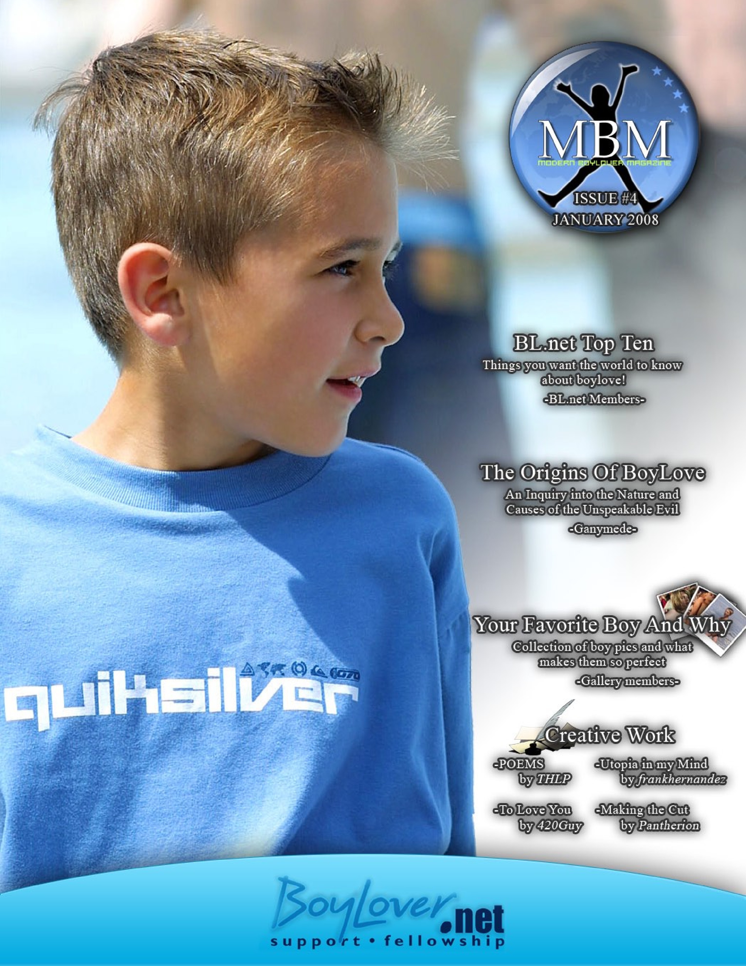 Modern Boylover Magazine was a community-produced publication which ran from 2006 to 2015. It was started by members of BoyLover.net, and continued after the site was taken down. It released 14 issues in total.